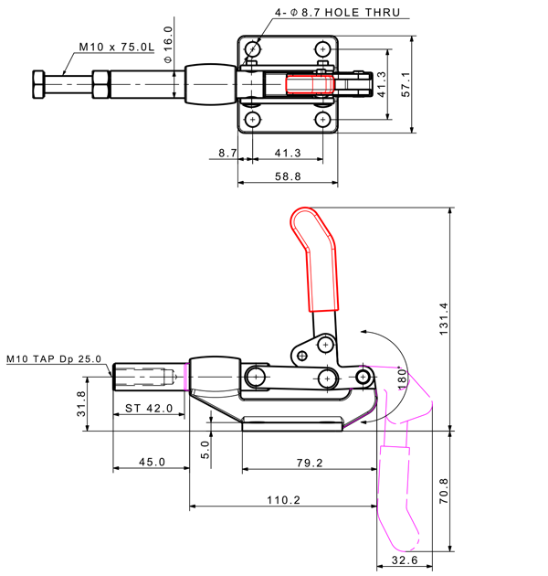 400 641 180˚ M10 x 75.0L 42 Flange