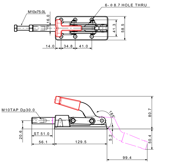 80 118 180˚ M6 x 30.0L 20 Threaded