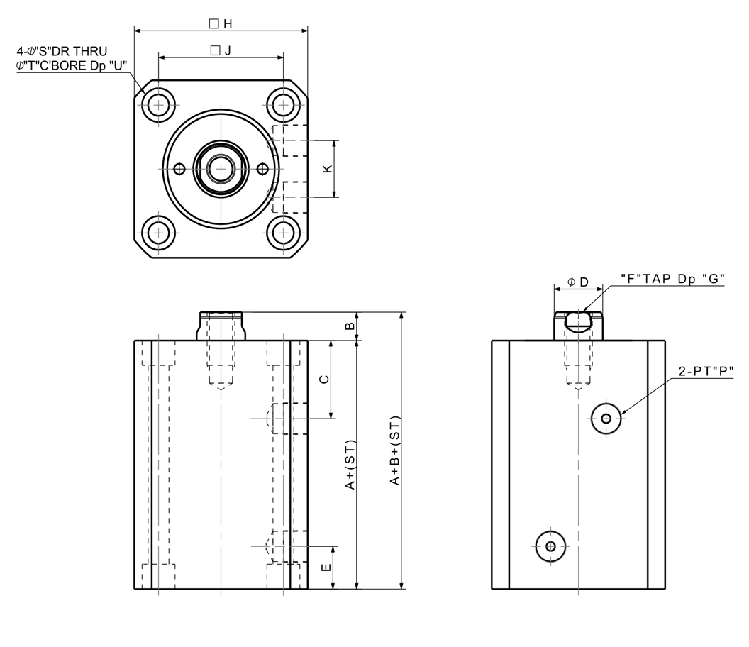 A B C øD E F G H J K P S T U Piston Dia. 2D 3D PDF