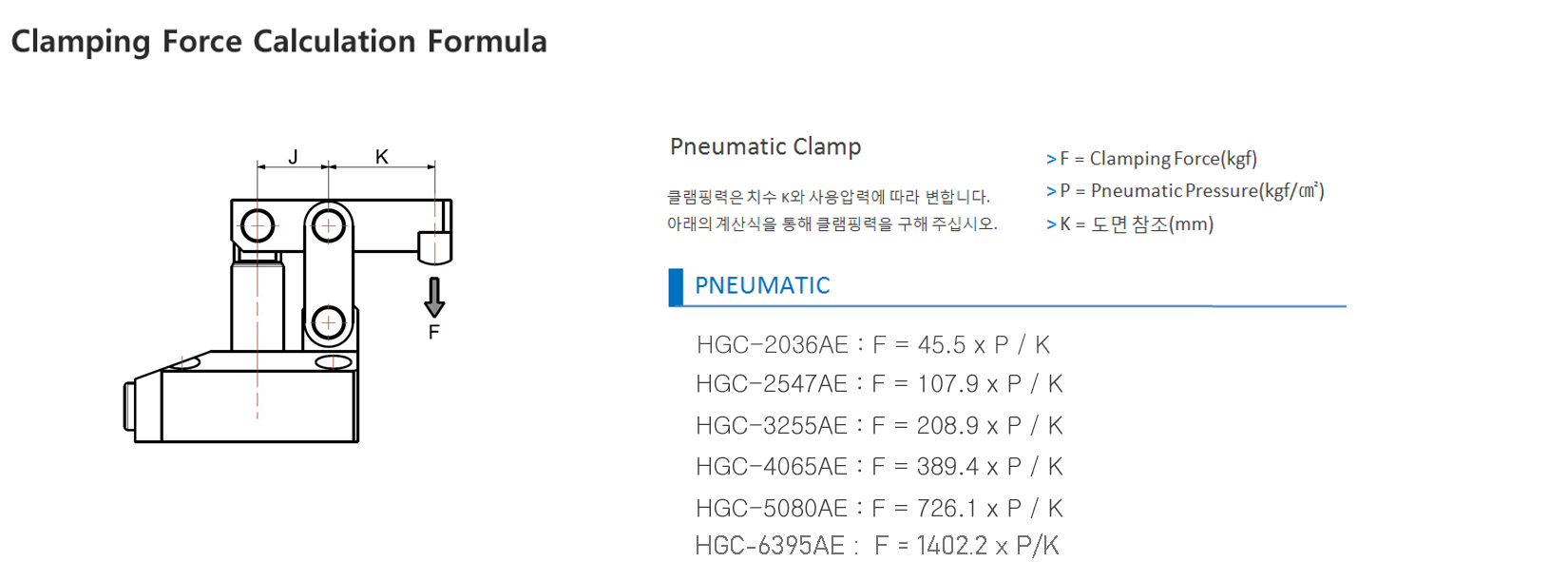 | Model No. | Clamping Force(kgf) | Piston Diameter(ø) |